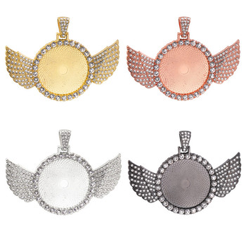 30mm Hiphop Sublimation Necklace Large Photo Frame Pendants Angle Wing Circle Rhinestone Blanks Bezel Pendant Trays